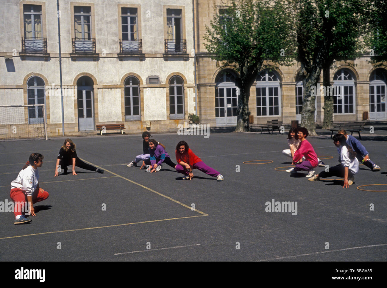 French Girls French Students Students Teacher Gym Class Stretching French Basque Country City Of Bayonne Bayonne France Europe Stock Photo Alamy